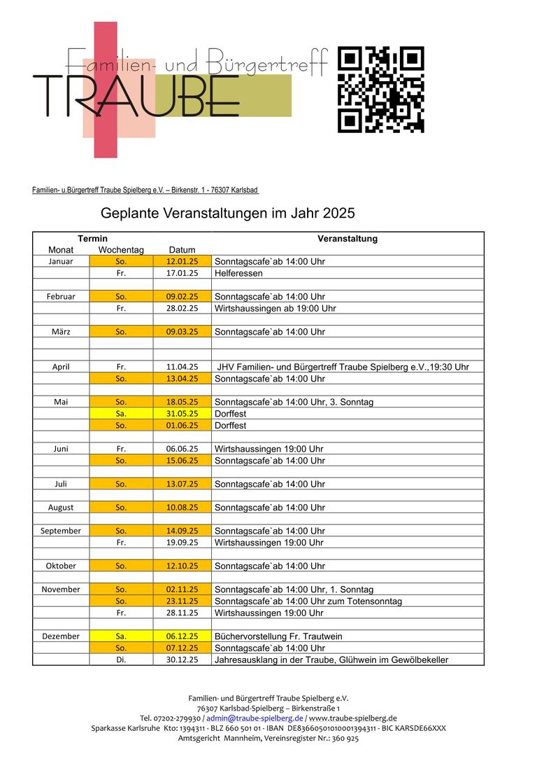 endlich ist es wieder soweit, der Bürger- und Familientreff Traube in Spielberg startet wieder mit dem Sonntags-Café.